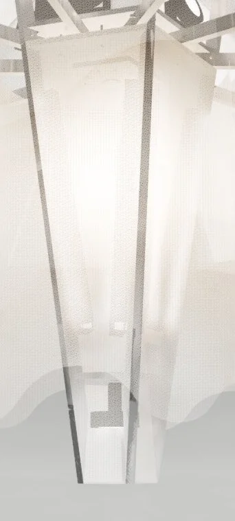 The Pillar is formed from a core of light with ethereal fabric wrapped in layers that shield the light. The layers of fabric allow subtle movement embracing both the permanent presence of God but also his living and active nature. During the day the Pillar will represent cloud, and at night fire.